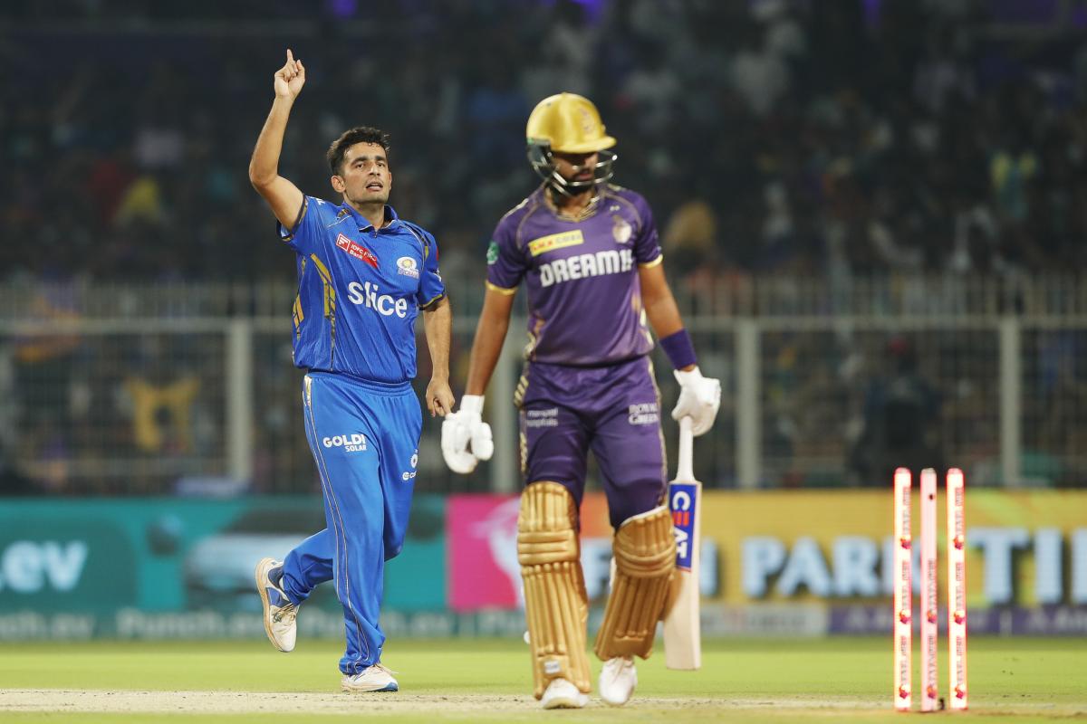 मुंबई की टीम ने टॉस जीतकर गेंदबाजी चुनी. इसके मुताबिक, मैच की शुरुआत इस नियम के साथ हुई कि पहले 5 ओवर केवल पावरप्ले के होंगे, एक गेंदबाज अधिकतम 4 ओवर और 3 गेंदबाज अधिकतम 3 ओवर फेंक सकते हैं। सलामी बल्लेबाजी करने उतरी कोलकाता की शुरुआत अच्छी नहीं रही। बुमरा ने अपनी यॉर्कर से सुनील नरेन को एक विकेट के लिए बोल्ड किया। फिलिप सॉल्ट ने सिर्फ 6 रन दिए और एक विकेट हासिल किया.