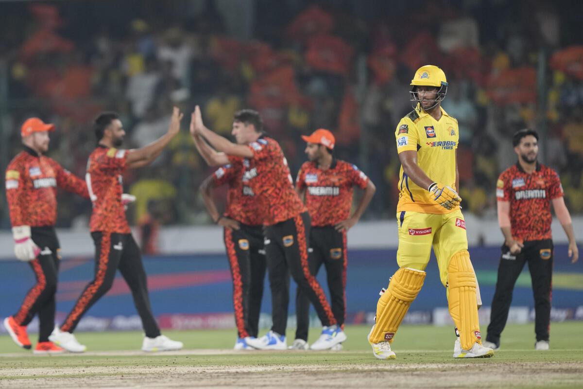 धोनी 1 और रवींद्र जड़ेजा 31 रन के साथ, सीएसके ने निर्धारित 20 ओवर में 5 विकेट पर 165 रन बनाए। हैदराबाद के लिए भुवनेश्वर कुमार, पैट कमिंस, जयदेव उनाथकट, शाहबाज अहमद और नटराजन ने एक-एक विकेट लिया।