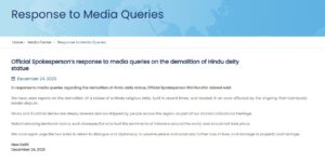 विदेश मंत्रालय ने स्पष्ट किया कि क्षेत्रीय या सीमा संबंधी दावों के बावजूद धार्मिक प्रतीकों और विरासत का सम्मान किया जाना चाहिए। मंत्रालय ने इस तरह की घटनाओं को दुर्भाग्यपूर्ण बताते हुए कहा कि इनसे न केवल भावनाएं आहत होती हैं, बल्कि क्षेत्रीय शांति पर भी नकारात्मक असर पड़ता है।