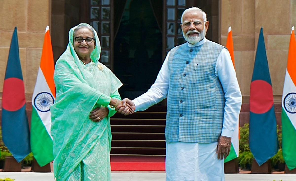 लाइव हिंदी खबर :- भारत के दो दिवसीय दौरे पर आईं बांग्लादेश की प्रधानमंत्री शेख हसीना ने प्रधानमंत्री नरेंद्र मोदी से मुलाकात की और द्विपक्षीय संबंधों पर चर्चा की. दो दिवसीय यात्रा पर कल भारत पहुंचीं शेख हसीना का आज (शनिवार) राष्ट्रपति भवन में औपचारिक स्वागत किया गया। अपने एक्स पेज पर रिपोर्ट प्रकाशित करने वाले विदेश मंत्रालय के प्रवक्ता रणदीप जयशवाल ने कहा, ”विशेष अतिथि का औपचारिक स्वागत किया गया.