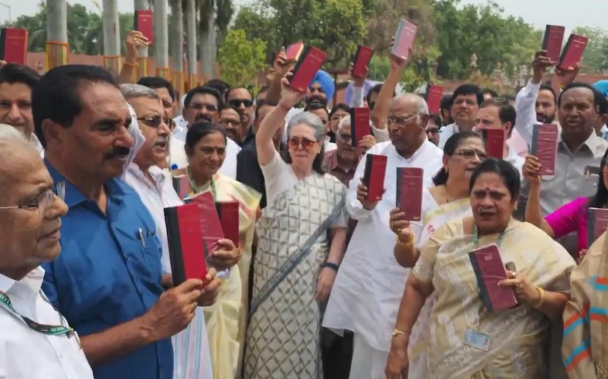 इस बीच, कांग्रेस, तृणमूल कांग्रेस, समाजवादी पार्टी और डीएमके सहित विपक्षी दलों के सांसदों ने संसद परिसर में संविधान की किताब हाथ में लेकर प्रदर्शन किया और नरेंद्र मोदी सरकार पर अंतरिम अध्यक्ष के चुनाव के मामले में संविधान का उल्लंघन करने का आरोप लगाया। . उस समय उन्होंने नारे लगाए कि हम संविधान की रक्षा करेंगे, संविधान जिंदाबाद रहेगा.