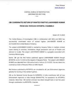 इस प्रक्रिया में CBI, विदेश मंत्रालय और गृह मंत्रालय ने संयुक्त प्रयास किए। अधिकारियों ने बताया कि लखविंदर को तुरंत हरियाणा लाया गया और अब वह संबंधित मामलों की जांच और कानूनी कार्रवाई के तहत हिरासत में रहेगा।हरियाणा पुलिस का कहना है कि इस कार्रवाई से गैंगस्टर संस्कृति और आपराधिक नेटवर्क पर सख्त संदेश जाएगा। लखविंदर के खिलाफ दर्ज मामलों में साक्ष्य और गवाहों के बयान की पुष्टि की जाएगी।